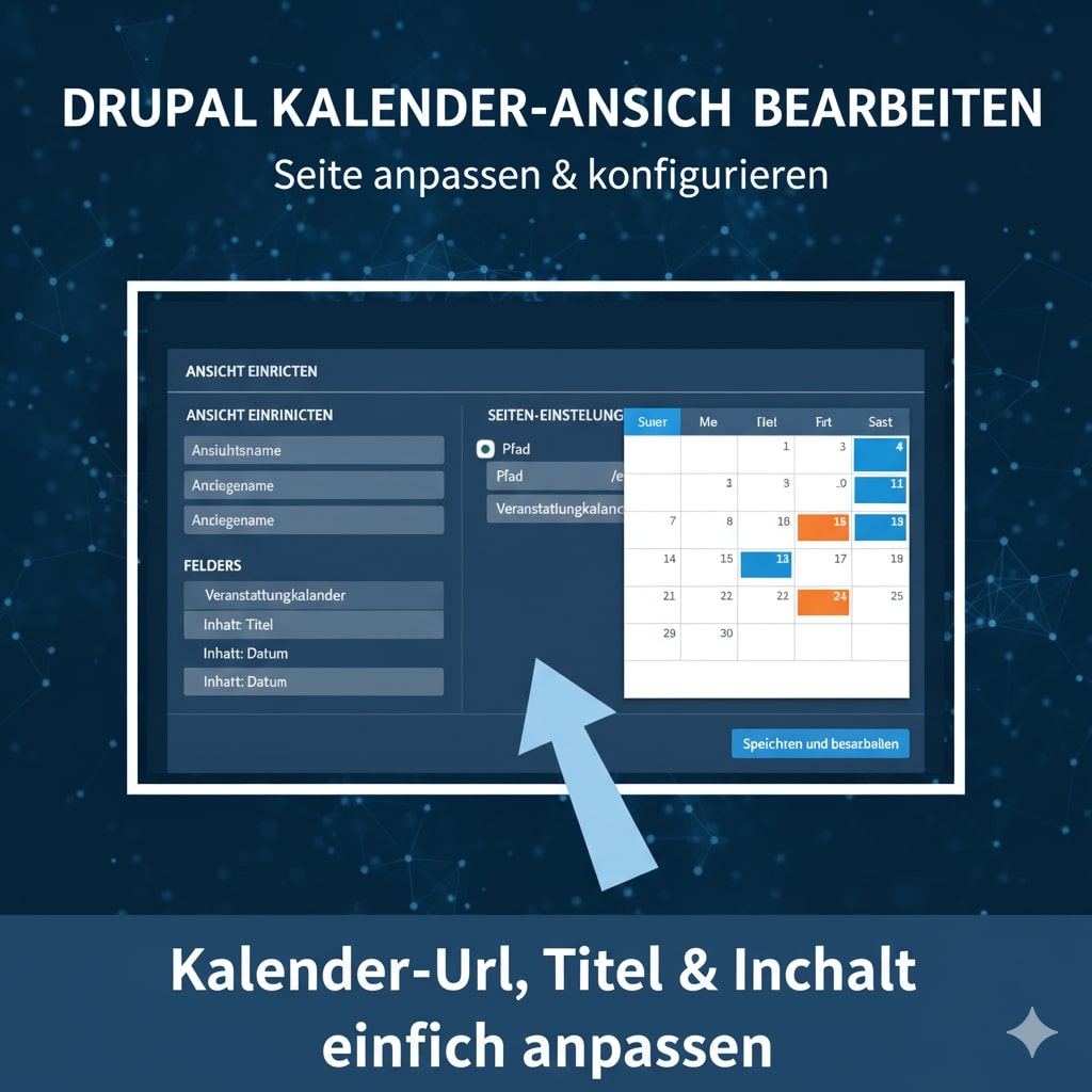 Nachdem Sie die entsprechenden Abschnitte ausgefüllt haben, erstellen Sie die Ansicht unserer Kalenderseite, indem Sie auf die Schaltfläche Ansicht erstellen klicken. Die Bearbeitungsseite für die Ansicht wird angezeigt. Auf dieser Seite können Sie die Adresse der Kalender-Url (Pfad), den Seitennamen (Titel), den Seiteninhalt (Felder) usw. ändern.