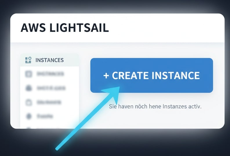 Um AWS Lightsail nutzen zu können, müssen Sie zunächst ein Amazon-Konto besitzen. Nachdem Sie sich angemeldet haben, klicken Sie auf dem angezeigten Bildschirm auf die Schaltfläche Create instance (Instanz erstellen) und fahren mit der Servererstellungsphase fort.