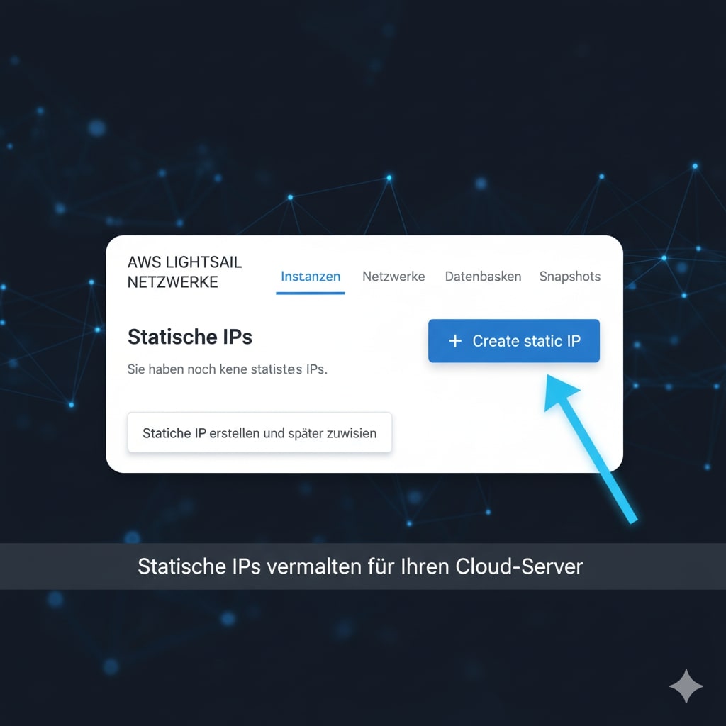 Da diesem erstellten Server noch keine statische IP zugewiesen wurde, kommt es bei jedem Neustart des Servers zu einem wiederholten Wechsel der IP. Um dies zu verhindern, muss eine statische IP definiert werden.