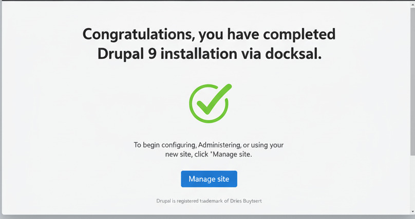 Herzlichen Glückwunsch! Sie haben die Drupal 9 Installation über Docksal erfolgreich abgeschlossen.